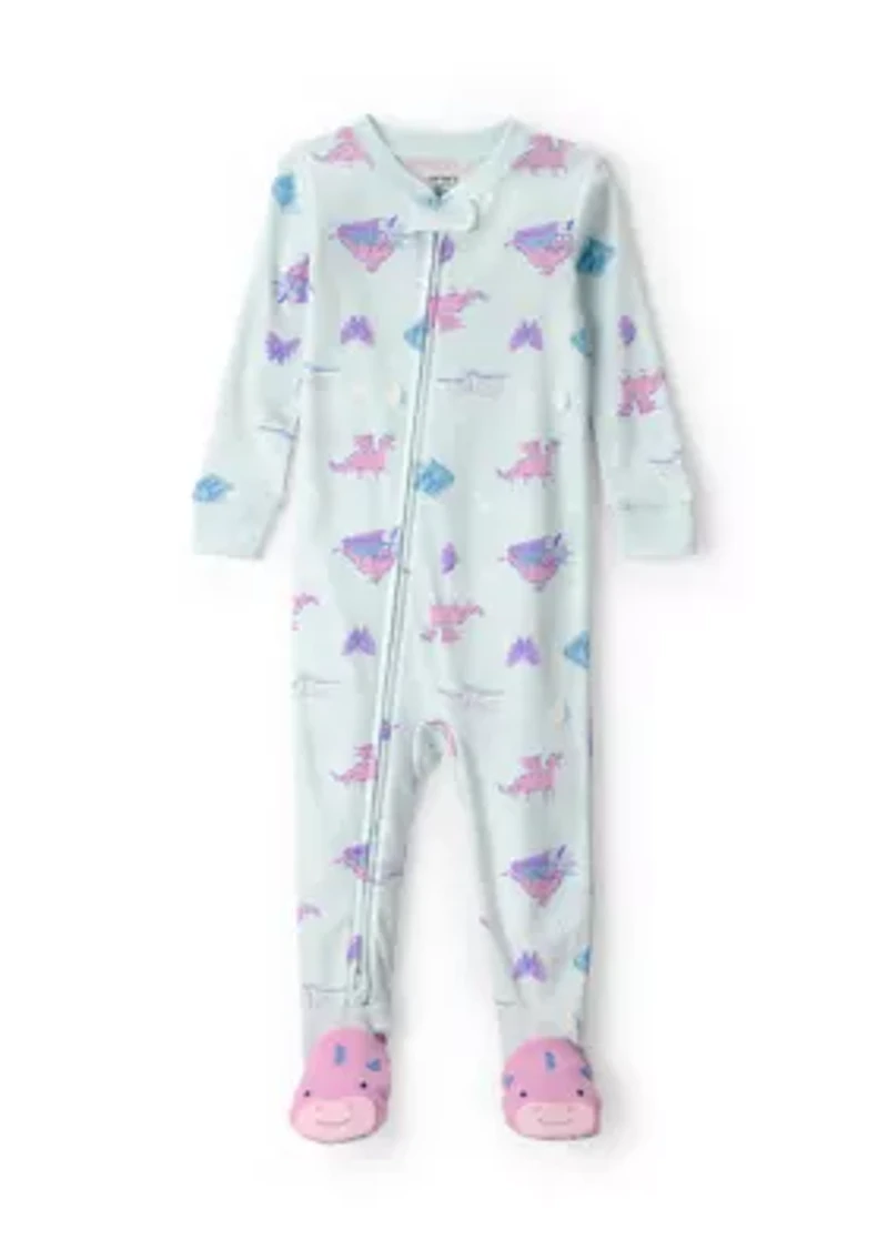 Snuggle up in cozy comfort with this Carter's® snug fit 1-piece pajama. Made from 100% cotton, it offers breathability and softness for a dreamy night’s sleep. The fun dragon microprint adds a touch of magic, while the convenient 2-way zipper makes dressing a breeze. Perfect for chilly nights, this essential piece of baby apparel keeps your little one comfy and stylish. 2-way zipper Long sleeves Imported Material & Care 100% cotton Machine washable