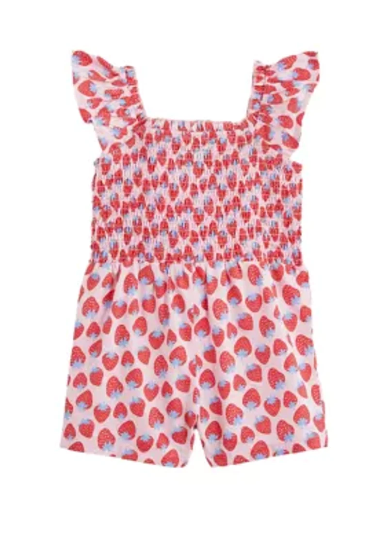 Ruffles and smocking collide with a cute allover print to form this romper from Crown & Ivy™. Pullover Imported Belk Exclusive Product Specifications Knee length Material & Care Cotton Machine washable