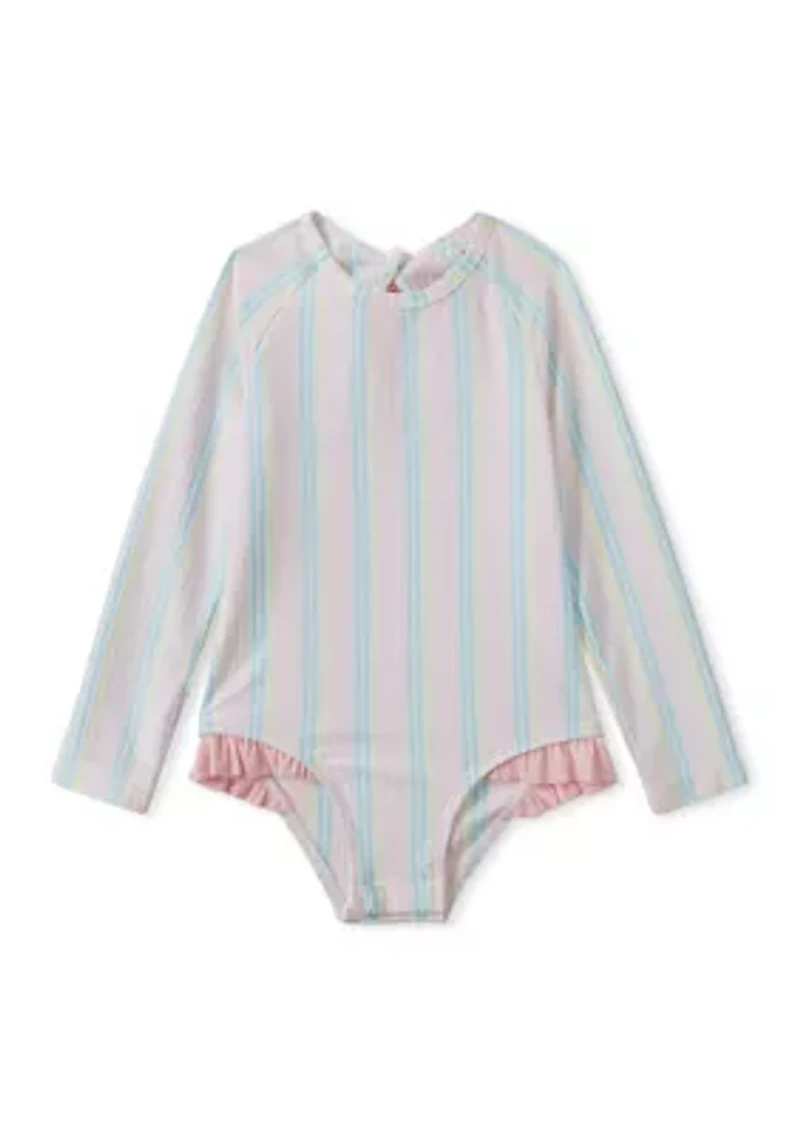 Baby Girls Ruffle Bow Rash Guard One Piece Swimsuit