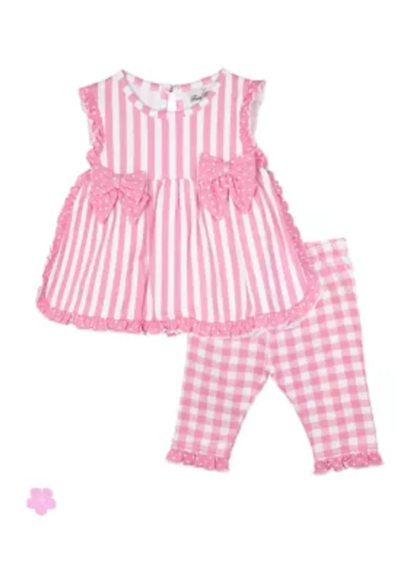 Baby Girls Striped Top and Check Print Leggings Set