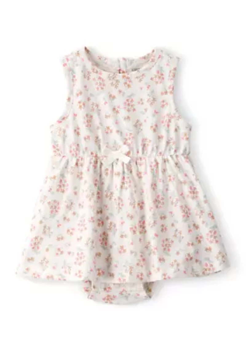 Every little one deserves a wardrobe that combines style and comfort. This charming Carter's® dress features an all-over floral print in soft, neutral tones, making it a versatile addition to any casual outfit. Designed with easy dressing in mind, the snaps at the legs and in the back allow for movement and play. Snap legs Button closure Crew neck Sleeveless Bodysuit Imported Material & Care 100% cotton Machine washable
