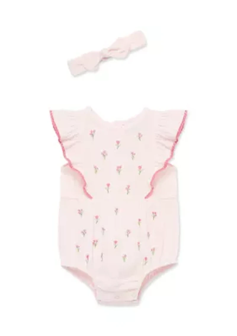 Baby Girls Tiny Flowers One Piece and Headband Set