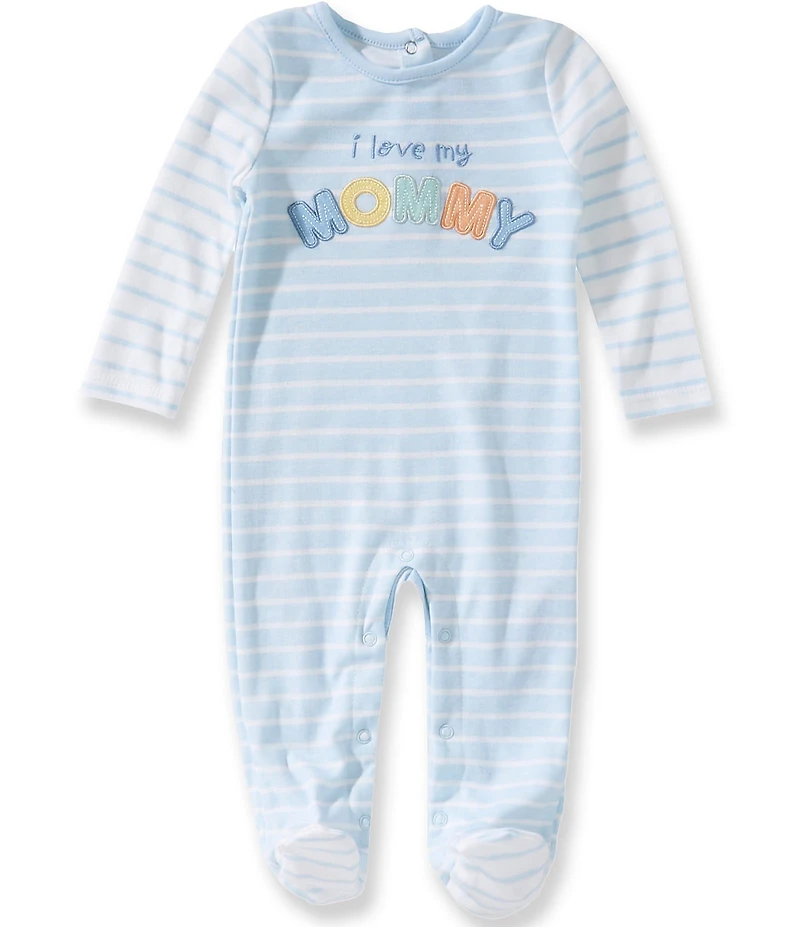 Baby Starters Baby Boys Long Sleeve Striped 'I Love Mommy' Embroidery Footed Coverall