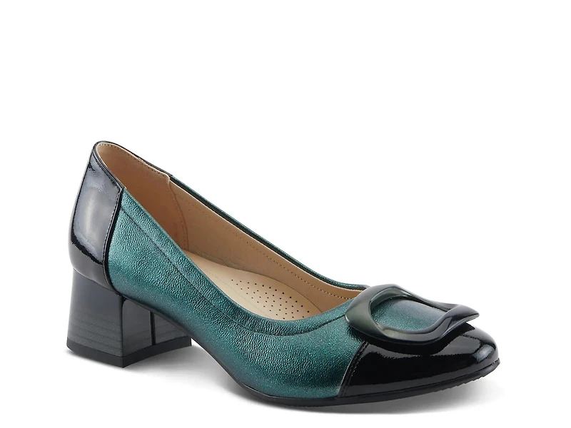 Bring a classic touch to your look with the Azura Baby Steps pump. This leather pair features a bold, sculptural buckle detail and sharp block heel that elevate a dressier look with ease.