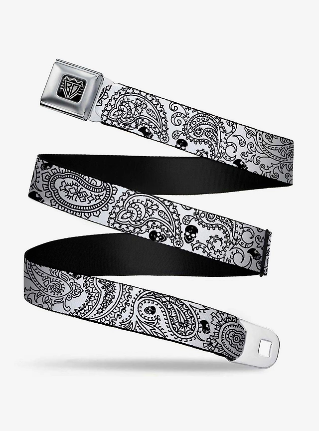 Bandana Skull Print Seatbelt Belt Black Silver