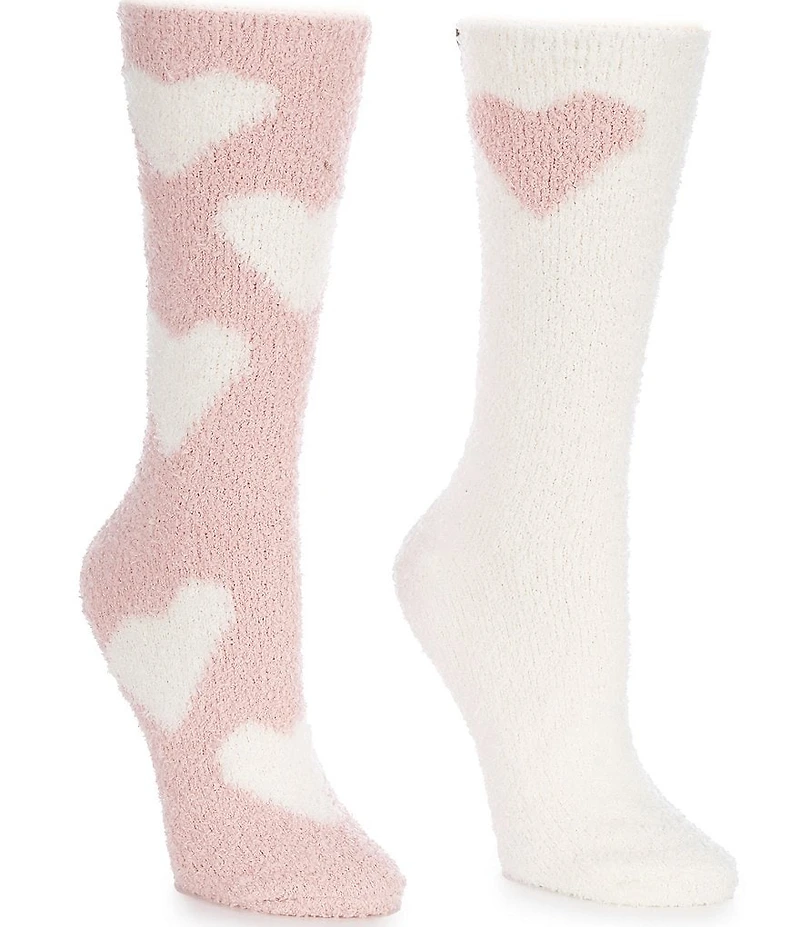 From Barefoot Dreams, this sock set features: Cozychic fabrication Two-pairs of socks Allover heart print & single heart print Polyester Machine wash cold/tumble dry low Imported.