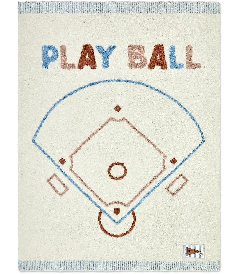 From Barefoot Dreams, this blanket features: Reverse jacquard knit that showcases a sketched baseball field design and a bold “PLAY BALL” quote — perfect for budding fans and future all-stars Crafted from signature CozyChic® fabric, it offers the perfect blend of warmth, breathability, and buttery-soft texture 2”x1”-ribbed edges on the top and bottom add a refined touch and extra durability “Let’s Go” patch sewn on the bottom right corner Dimensions, 30" x 40" Polyester Machine wash/tumble dry Imported.