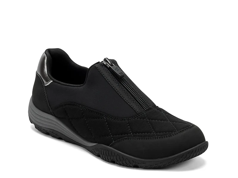 Step into laidback style and all-day comfort with the Easy Spirit Barron sneaker. The sneaker offers arch support and a cushioned, removable insole for customized relief. The upper includes a sleek front zipper for convenience and style, while the flexible, durable sole make every step feel effortless. Orthotic-friendly, this sneaker is crafted to adapt to your needs without compromising on comfort or design.