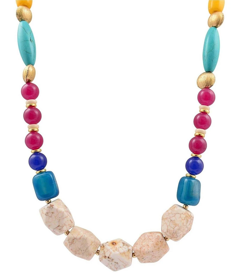 From Barse, this necklace features: Long strand necklace Gold tone hardware Genuine magnesite, jade and agate stones Lobster clasp closure Approx. 30" length Imported.