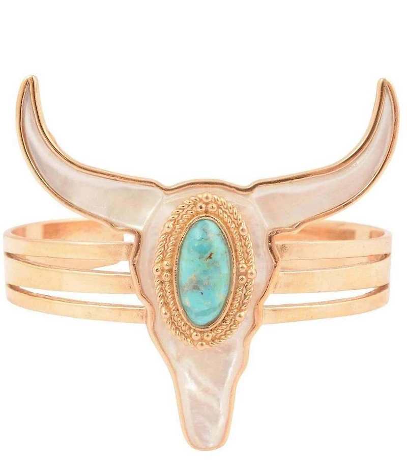 Barse Genuine Turquoise and Mother-of-Pearl Longhorn Statement Cuff Bracelet