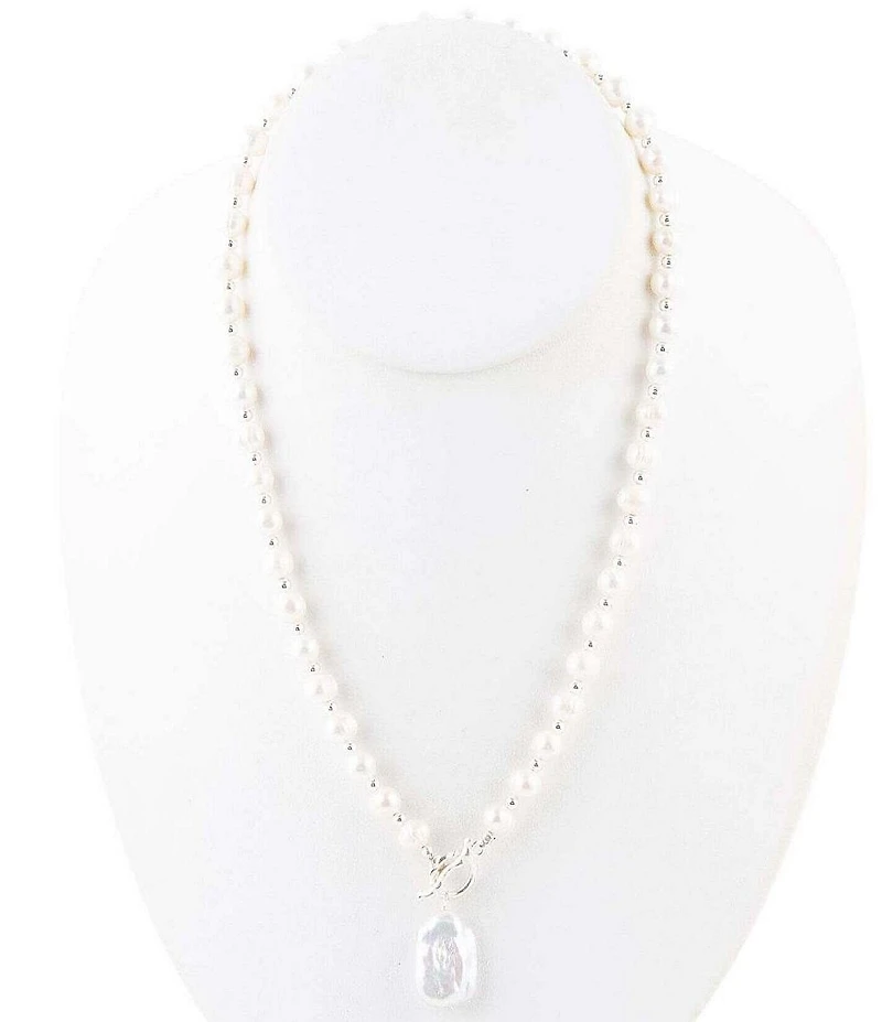 From Barse, the Sterling Silver and Genuine Pearl Toggle Front Pendant Necklace features: Pearl Sterling silver Natural stones may vary and be unique to each piece Crafted and finished by hand Charm drop is approx. 1" long Approx.: 18" long Imported.