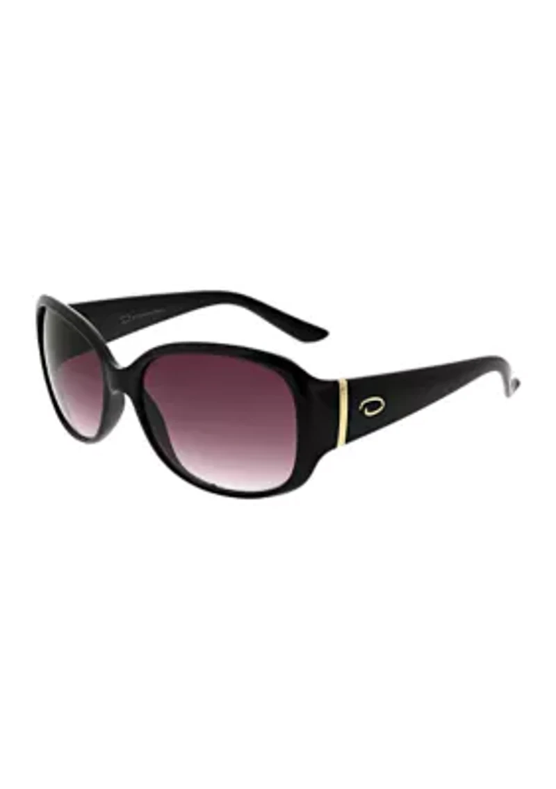 Detailed with gold-colored accents for a subtle touch of elegance, these sunglasses from Oscar de la Renta are featured in a rectangular frame for a simplistic sunny-day style. Imported Product Specifications 57 mm L x 17 mm W x 134 mm H Material & Care Plastic Clean with a soft cloth