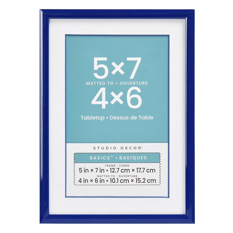 This tabletop frame by Studio Décor will show off your treasured photographs in classic style. Mix and match different colors and sizes to complement your décor and add a personalized touch to almost any space in your home or office.Details:Available in multiple colors and sizesComplies to TSCA Title VIBlack MDF back board with easel, turnbuckles and triangle hangerPVC, glass, MDF backing and matSize Information:3" x 5", 4" x 6" unmatted (7.6cm x 12.7cm, 10.1cm x 15.2cm unmatted)4" x 6", 5" x 7" unmatted (10.2cm x 15.2cm, 12.7cm x 17.8cm unmatted)5" x 7", 6" x 8" unmatted (12.7cm x 17.7cm, 15.2cm x 20.3cm unmatted)8" x 10", 9" x 11" unmatted (20.3cm x 25.4cm, 22.8cm x 27.9cm unmatted)