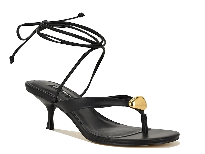 The Batty sandal from Nine West brings a fresh, playful energy to your wardrobe with its flared heel and strapping design that add a modern twist to a feminine silhouette. This sandal effortlessly transitions from casual daytime errands to evening plans, offering metallic shine and delicate ankle wraps that keep the look light and versatile.