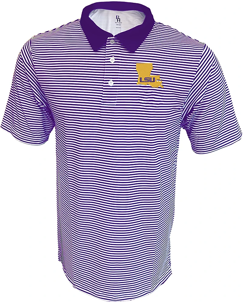 Bayou Apparel Men's Louisiana State University Stripe Polo Shirt