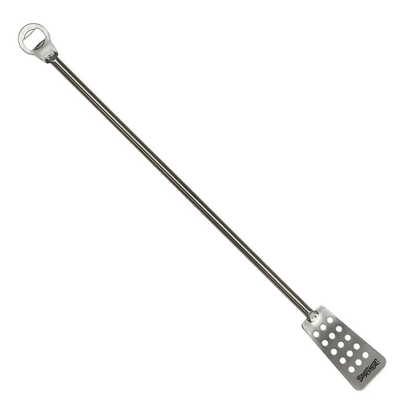 From homebrew start-to-finish, use the Bayou Classic 24 in Stainless Brew Mash Paddle to mash grains into fermentable sugars. The stainless build provides long-lasting use and a high-end look, and the mash holes allow grain to pass through. The 2-inch wide perforated paddle offers easy scooping, stirring and plating, while the bottle opener allows you to open a cold beer when the cooking is complete.