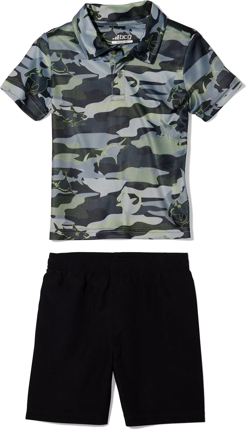 BCG Boys' 4-7 Golf Shark Camp Print Polo Set