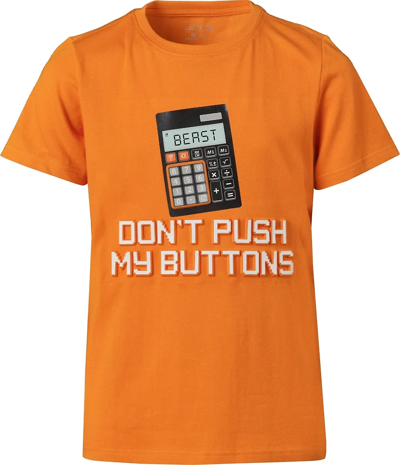 He can sport the BCG Boys' Don't Push My Buttons Graphic T-shirt. This shirt is made with cotton and polyester for a comfortable feel. The calculator graphic with the words "don't push my buttons" in an embossed print adds a fun touch. Short sleeves.