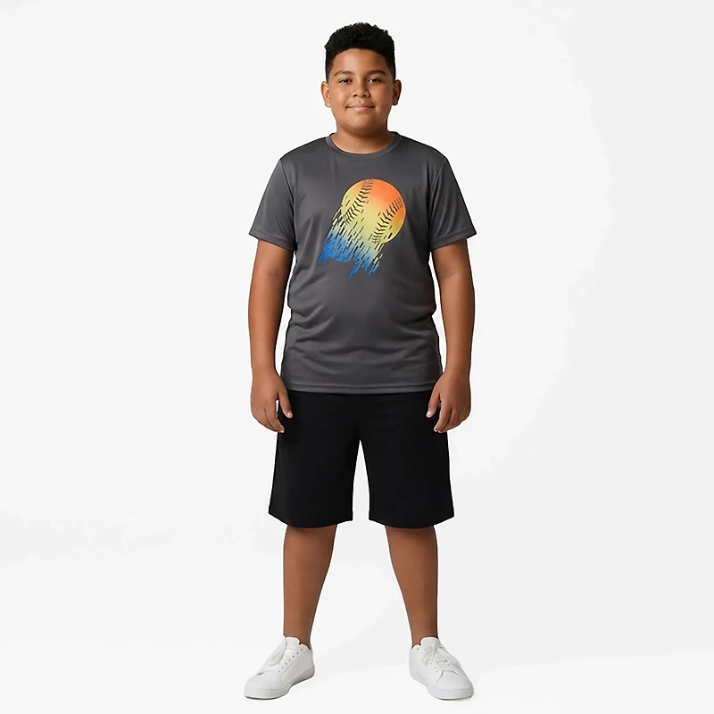 Whether he is looking to show off his skills or just dress casually, the BCG Boys' Turbo GFX T-shirt makes a great choice. This T-shirt is made of 100% recycled polyester with short sleeves and a crew neck to offer lasting comfort, and young athletes will love the sporty chest graphic.