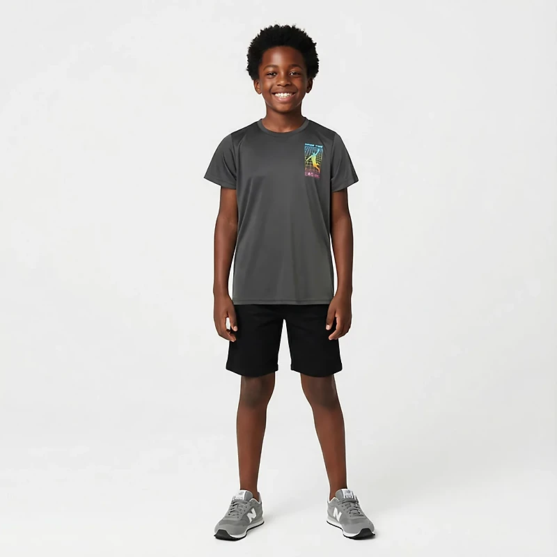 Look your best in BCG Boys' Turbo Short Sleeve Hang Time Graphic T-shirt. It is made of 100% recycled polyester. The moisture wicking technology keeps you dry, and its crew neckline adds to the casual style. The short sleeves allow you to stay cool.