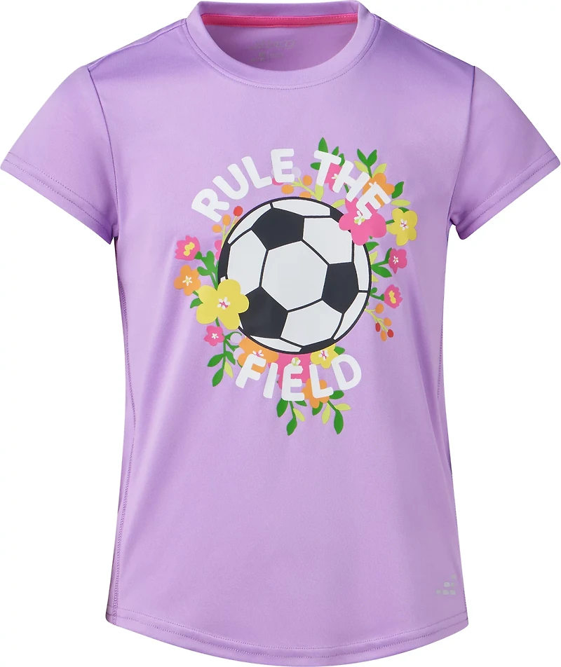 Work up a sweat with the BCG Girls' Turbo GFX T-shirt. The polyester material provides a comfortable feel, while the moisture wicking technology helps keep you cool and dry.