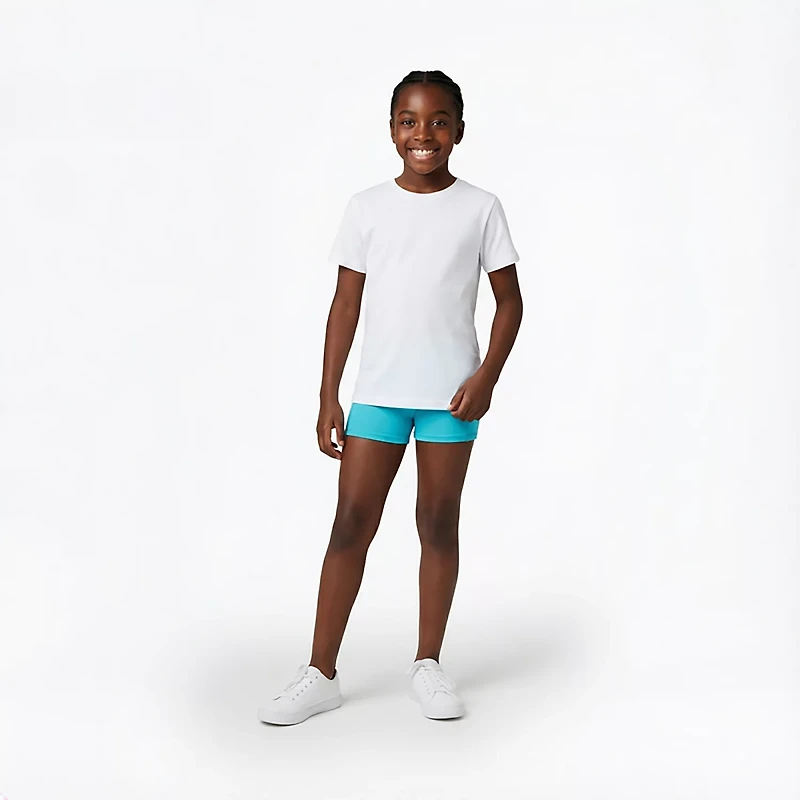 She'll stay comfy in the BCG Girls' Volley Training Shorts 4 in. These shorts are crafted from a blend of polyester and spandex to stand up to repeated wear, and the moisture-wicking technology delivers a dry, comfortable feel throughout the day.