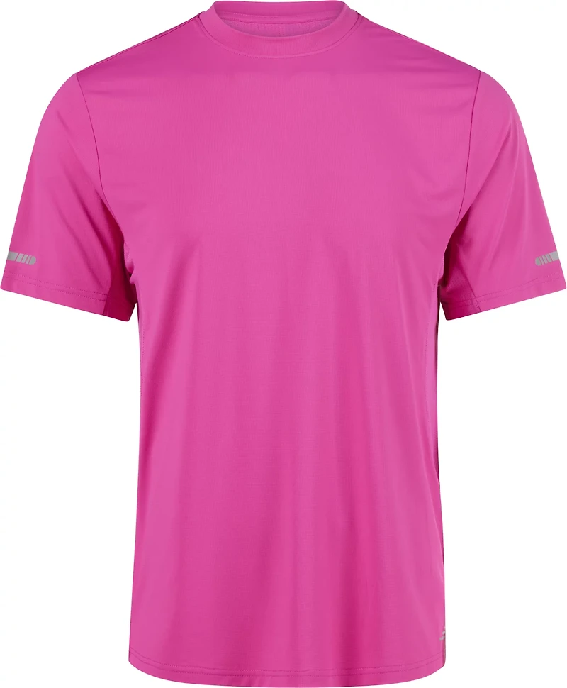 Head out for a run with the BCG Men's Run Performance Pieced T-shirt. The polyester and spandex material provides a comfortable feel, while the moisture wicking technology helps keep you cool and dry. Mesh piecing promotes breathability, and the reflective details ensure visibility.
