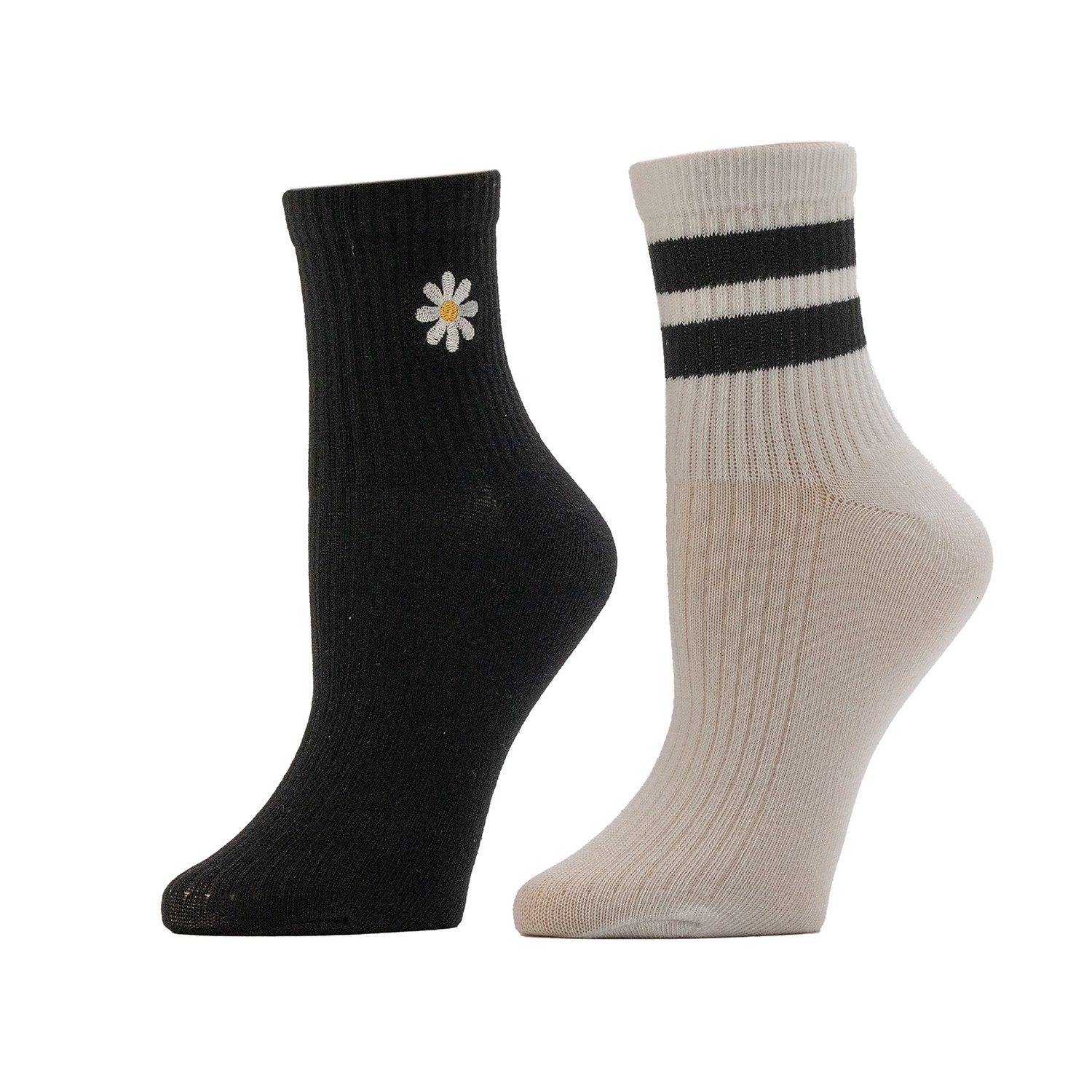 Reach for the BCG Women's Daisy Varsity Length Socks 2 Pack if you want to add a fun style to your daily outfit. The socks are designed with an embroidered daisy and varsity stripe style that helps them stand out, and their polyester, rubber and spandex construction offers long-lasting softness.