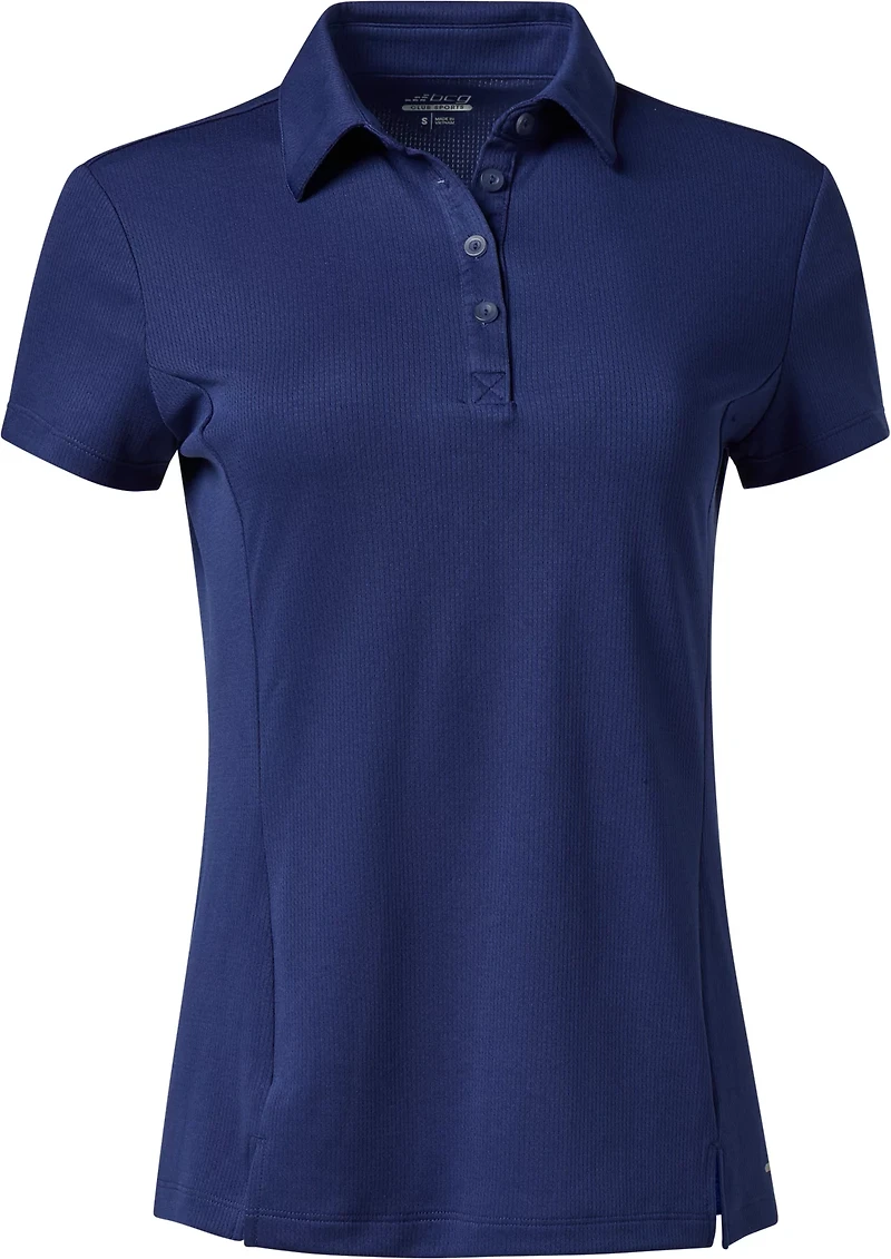 Look your best in the BCG Women's Tennis Button Short Sleeve Polo Shirt. It is made of 100% recycled polyester. The moisture-wicking technology keeps you dry, and its UPF 50 protectant repels the sun's harsh rays. The ribbed collar finishes off the design.