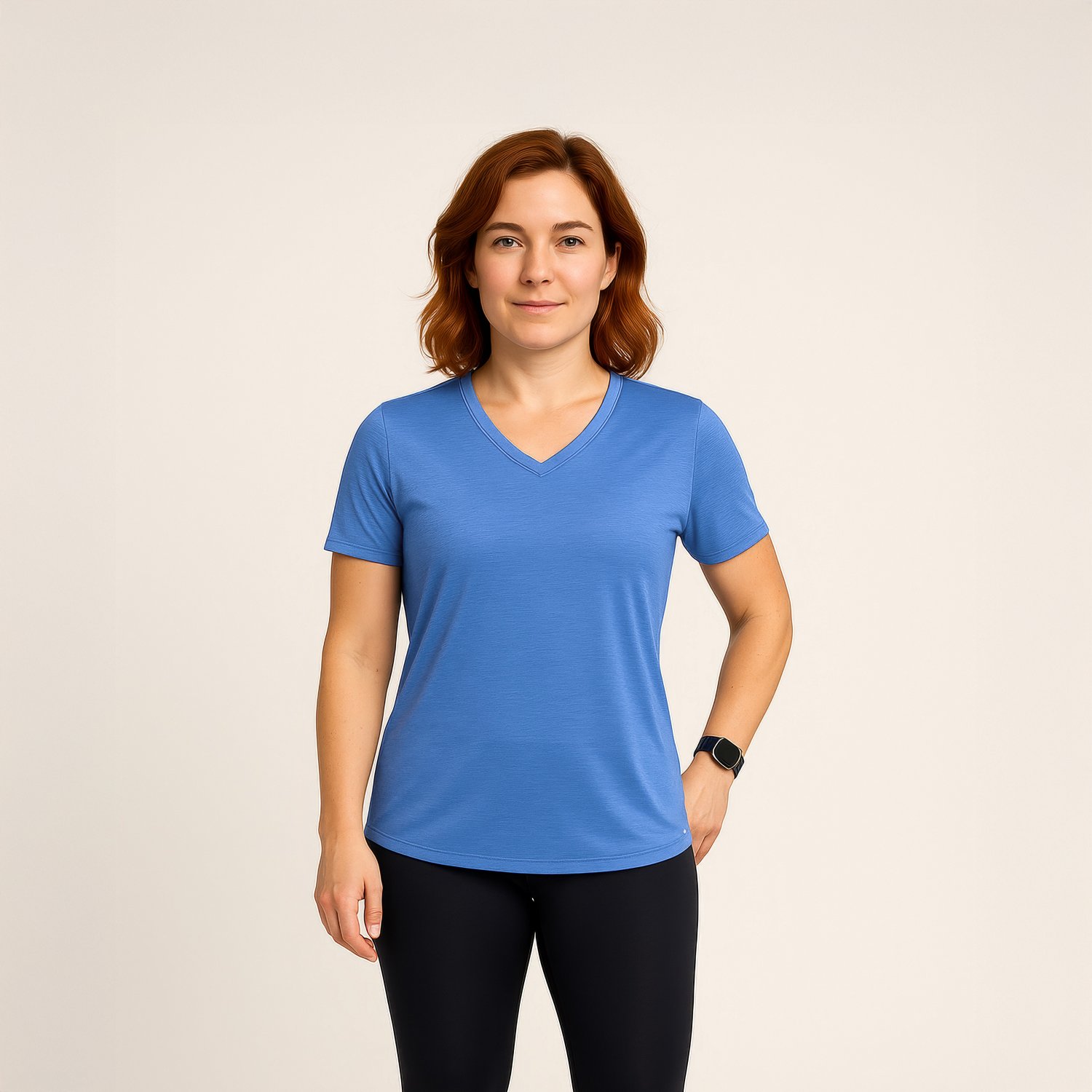Slip on the BCG Women's Turbo Melange V-neck T-shirt and take on the day in style. The 100% recycled polyester construction withstands wear and tear, and the melange pattern highlights an eye-catching appearance. The moisture-wicking technology helps you stay feeling dry and cool in the heat.