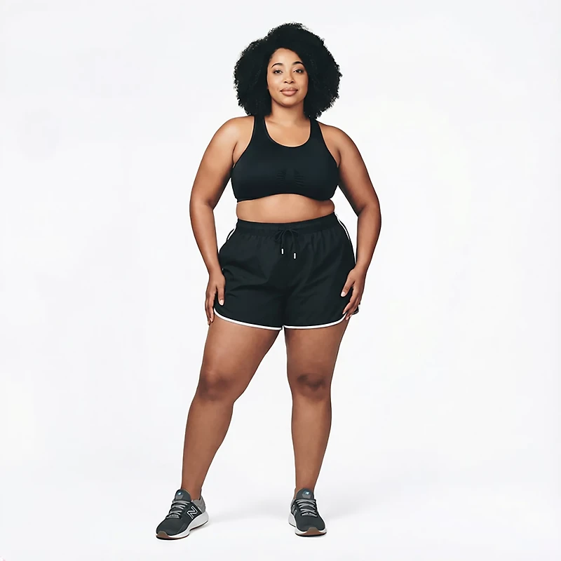 Enjoy comfort and style in the BCG Women's Woven Donna Plus Size Shorts. These athletic shorts are made of 100% polyester microfiber for comfort and durability. The elastic waist with a drawstring allows you to adjust the fit as needed, while the colorblocked design adds a stylish look.