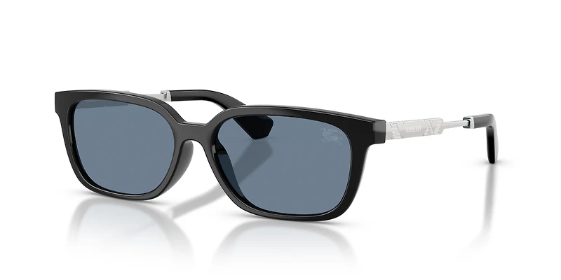 Elevate your everyday style with the Burberry BE4481D sunglasses. These sleek rectangular frames, crafted from a blend of bio-nylon and propionate, pair effortlessly with slender metal temples that showcase a lasered Burberry logo and subtle check design. Designed with a sunglasses' low bridge fit for added comfort, the black front contrasts elegantly with classic blue lenses. The polarized lenses reduce glare and enhance clarity, ensuring crisp vision in challenging light conditions. Timeless sophistication meets modern functionality in this eco-conscious design of Burberry sunglasses.