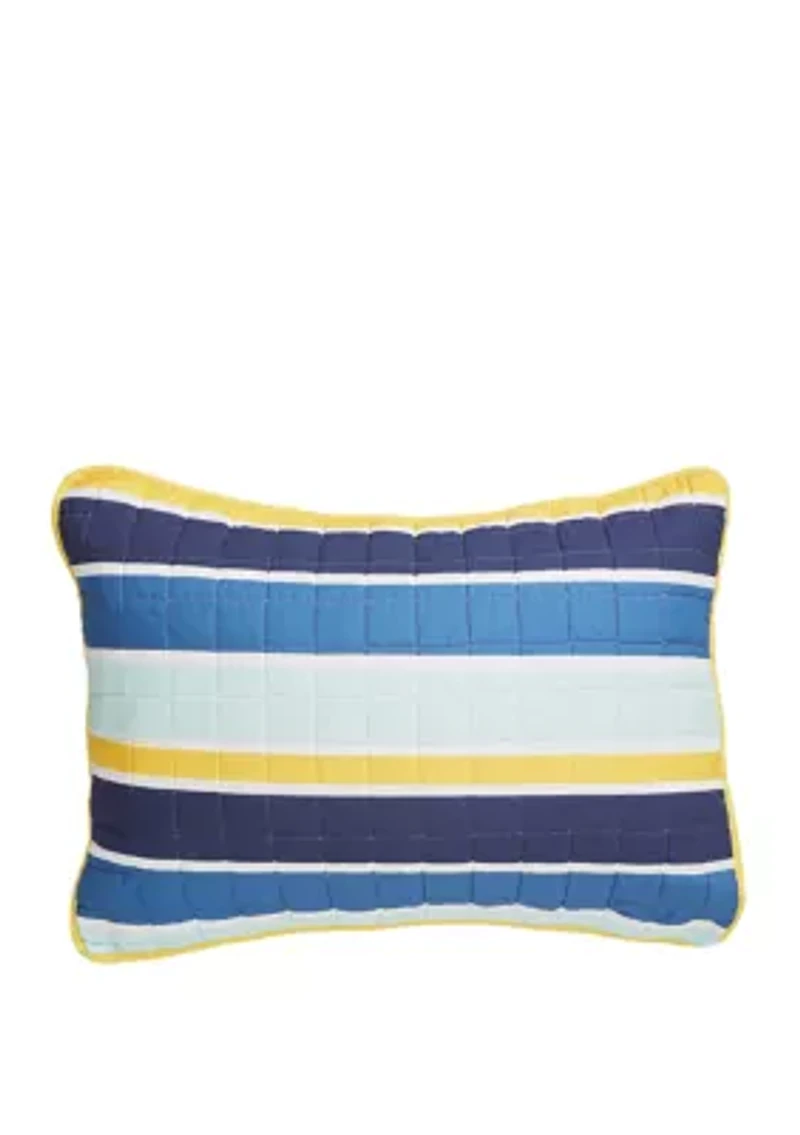 Designed with yellow and blue stripes, this sham by Crown & Ivy™ will lend a bright and cheerful touch to your bedroom decor. Tie closure Stripe pattern Imported Belk Exclusive Product Specifications 20 in x 26 in Material & Care Cotton Machine washable