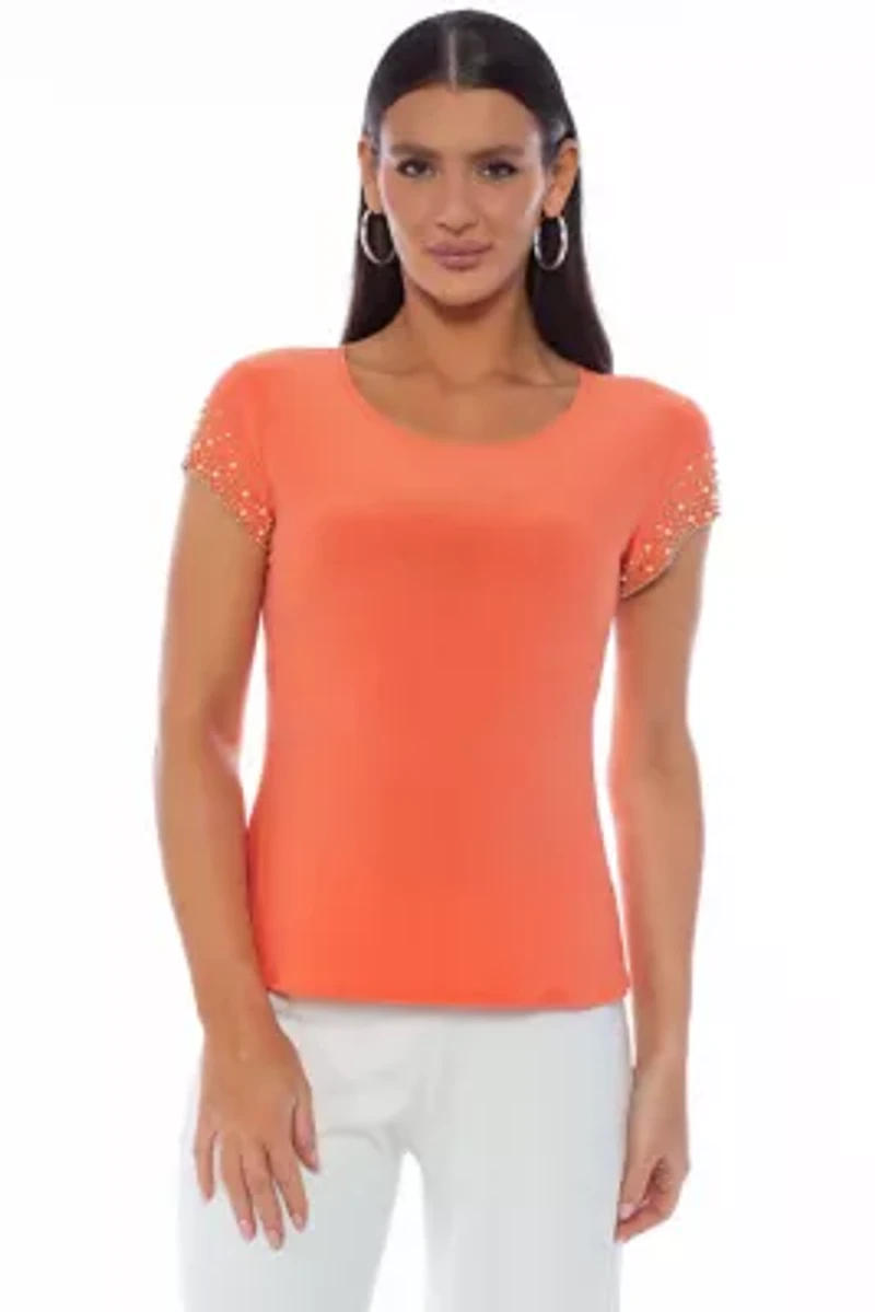 Beaded Cap Sleeve Top Pullover Scoop neck Short sleeve Unlined United States of America Imported Product Specifications 24" Material & Care Polyester/Spandex Hand wash