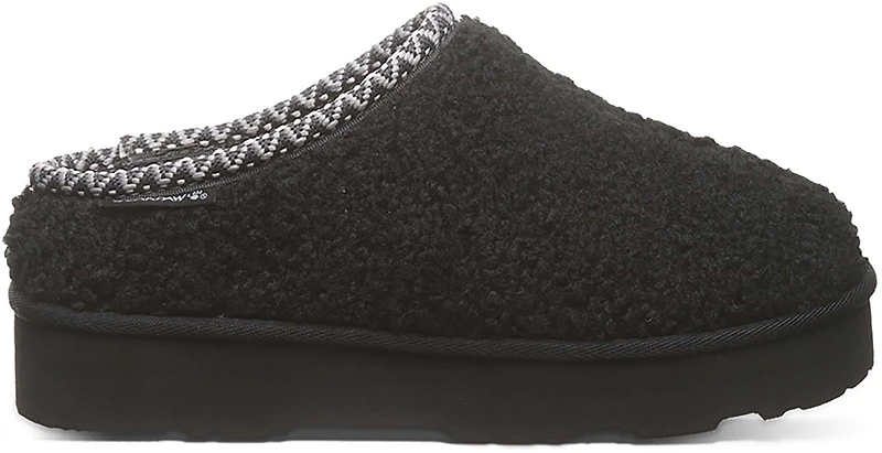 Relax or run errands in comfort with the Bearpaw Women's Snuggle Martis Slippers. These indoor and outdoor slippers have durable rubber outsoles and a platform heel for additional cushioning. The faux fur uppers, EVA midsoles and faux fur footbeds provide a comfortable feel, while the faux fur lining helps your feet stay warm. The webbing tape accent details add a touch of elegant style.