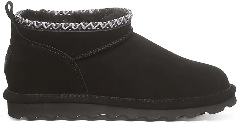 Show off your style in the Bearpaw Women's Super Shorty Deco Boots. These ankle-height booties have durable and sleek suede uppers and webbing tape accents for a touch of flair. Cushioned insoles and rubber outsoles provide a lightweight and comfortable feel, while the water-repellent finish and wool linings help your feet be comfy and dry.