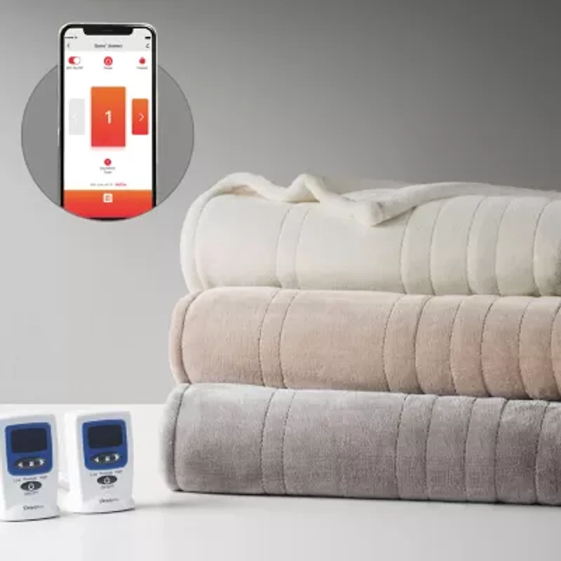 Relax with convenience and ease with this wi-fi compatible heated blanket. This blanket can be controlled via the traditional controller or through a free app and is also compatible with voice commands through google home and Alexa. Controllers feature 20 heat settings for precise temperature control with a controller cord of 12.5 ft long. Proprietary overheating technology grants additional protection and extends product life with temperature boost technology offering faster and safer heating. The soft, flexible wires provide durability and comfort.
