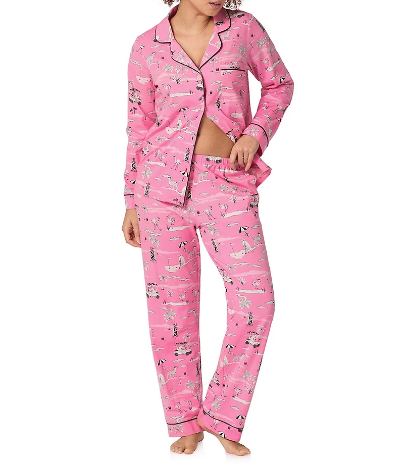 Bedhead Putting Pink Print Organic Cotton Blend Long Sleeve Notch Collar Knit Long Pajama Set