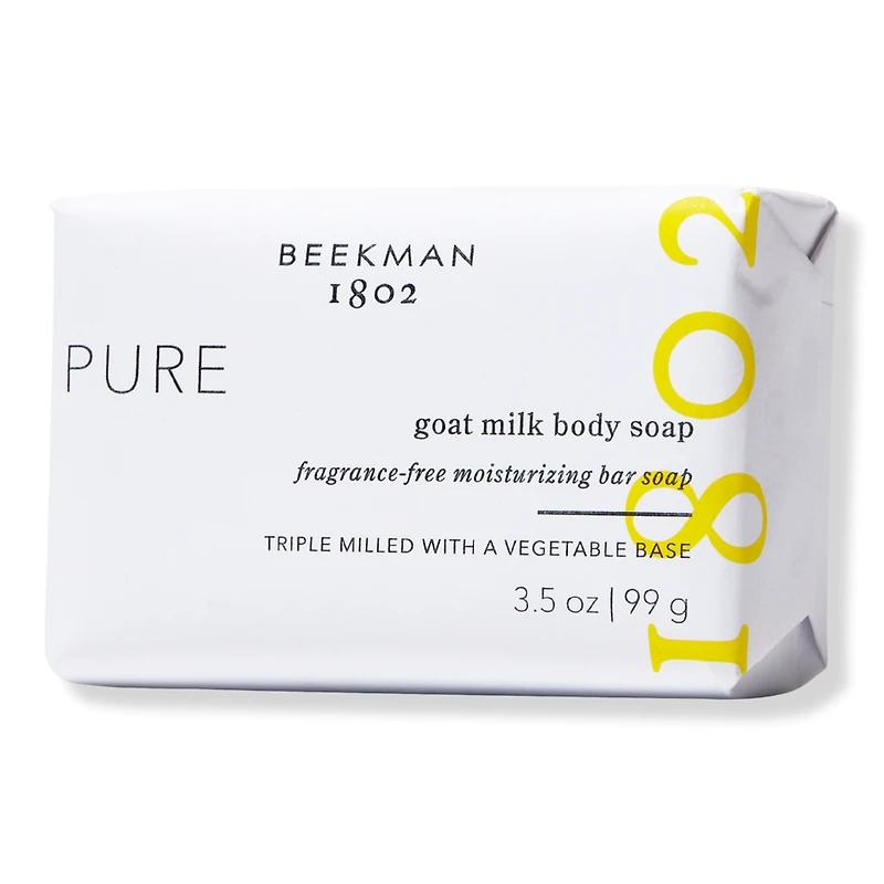 TRAVEL BAR SOAP PURE GOAT MILK. Benefits: 100% vegetable soap base that gets you squeaky-clean - without the squeak. Triple-milled to last even longer, extending all of the benefits of nourishing goat milk down to the very last lather. Goat Milk boosts skin health with the same pH as human skin, and it's rich in lactic acid, vitamins, and minerals to help renew and strengthen skin. Maintains a healthy skin barrier. Hypoallergenic. Dermatologist tested. Safe for sensitive skin. Key Ingredients: Goat Milk is rich in skin-nourishing vitamins, minerals, and fatty acids that transform skin from dry and irritated to healthy, hydrated, and smooth. 100% Vegetable Base helps prevent that dry, stripped feeling that often comes with cleansing. Glycerin is a plant-derived humectant that helps to deeply hydrate and prevent moisture loss out of the skin. Formulated Without: Fragrance. Sulfates. Parabens. Alcohol.