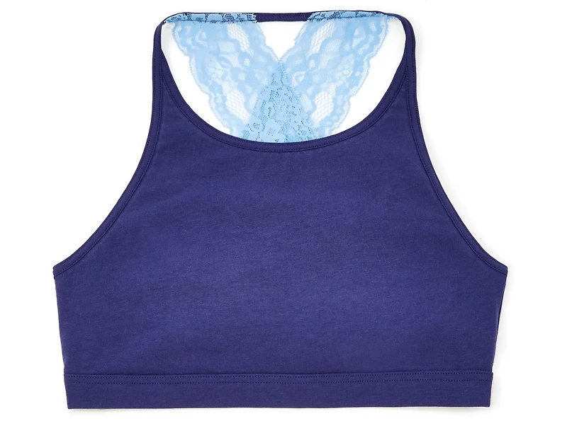 Amp up your bralette game with Ace, our unlined bralette in cool blue tones. This tank bralette features a cotton front with back keyhole detail in contrast lace trim. Show it off in low back tops and pair with easy bottoms to make this the perfect everyday set.