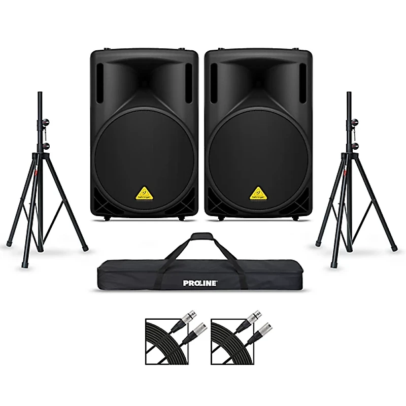 Behringer B215D 15" Powered Speaker Pair With Stands and Cables