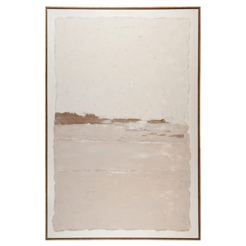 With a minimalist design in smooth, creamy tones, this Beige and White Abstract Framed Canvas Art Print creates a wall display that beautifully complements any decor! Overall dimensions Width: 39.5 in. Depth: 1.5 in. Height: 59 in. Distinctively printed on stretched canvas Brown frame around wrapped canvas Abstract subject Hues of white, tan, and brown Painted embellishments Weight: 5 lbs. Hangs from back-mounted hardware Care: Dust with a soft, dry cloth. Contact your local Kirkland's store for availability. Quantities and selection may vary by location. WARNING: Cancer and Reproductive Harm - For more information go to www.P65Warnings.ca.gov .