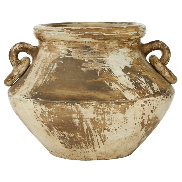 18" Beige Ceramic Antique Style Distressed Vase with Handles
