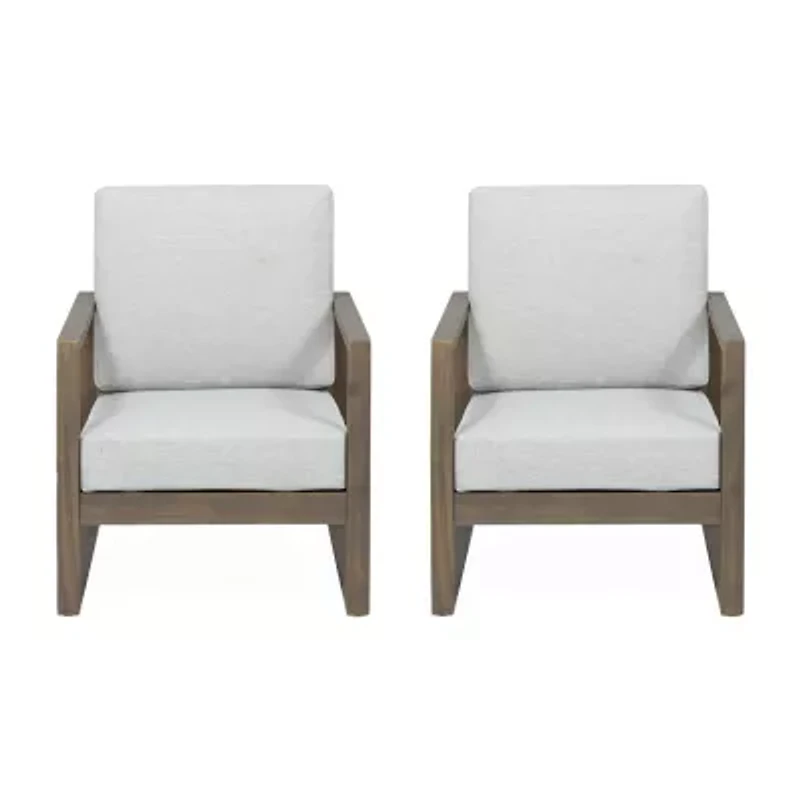 Tie your backyard or patio space together with a set of club chairs that offers outstanding relaxation and smooth design. These chairs feature gorgeous classic slat paneling and wonderfully plush cushions that offer a breezy and classic look for any backyard or patio space while allowing you to sit back and unwind in complete bliss. Created with durable acacia wood and plush water-resistant cushions, our chairs provide you with plenty of stability and extraordinary comfort that will support you throughout the summer season.