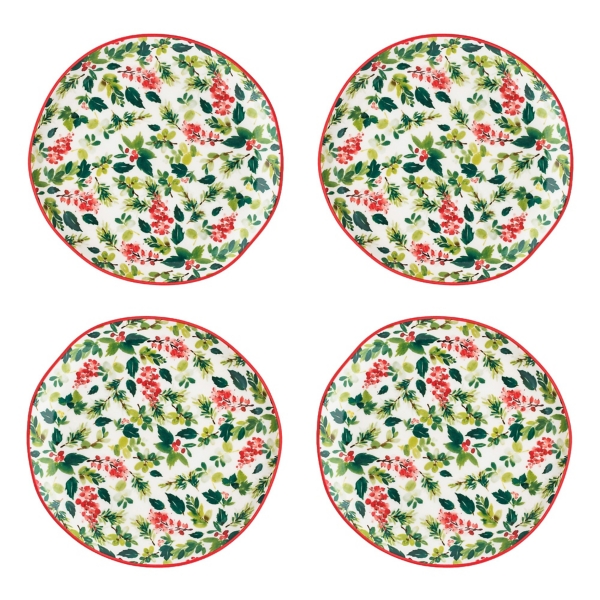 Bella Christmas Holly Appetizer Plates, Set of 4