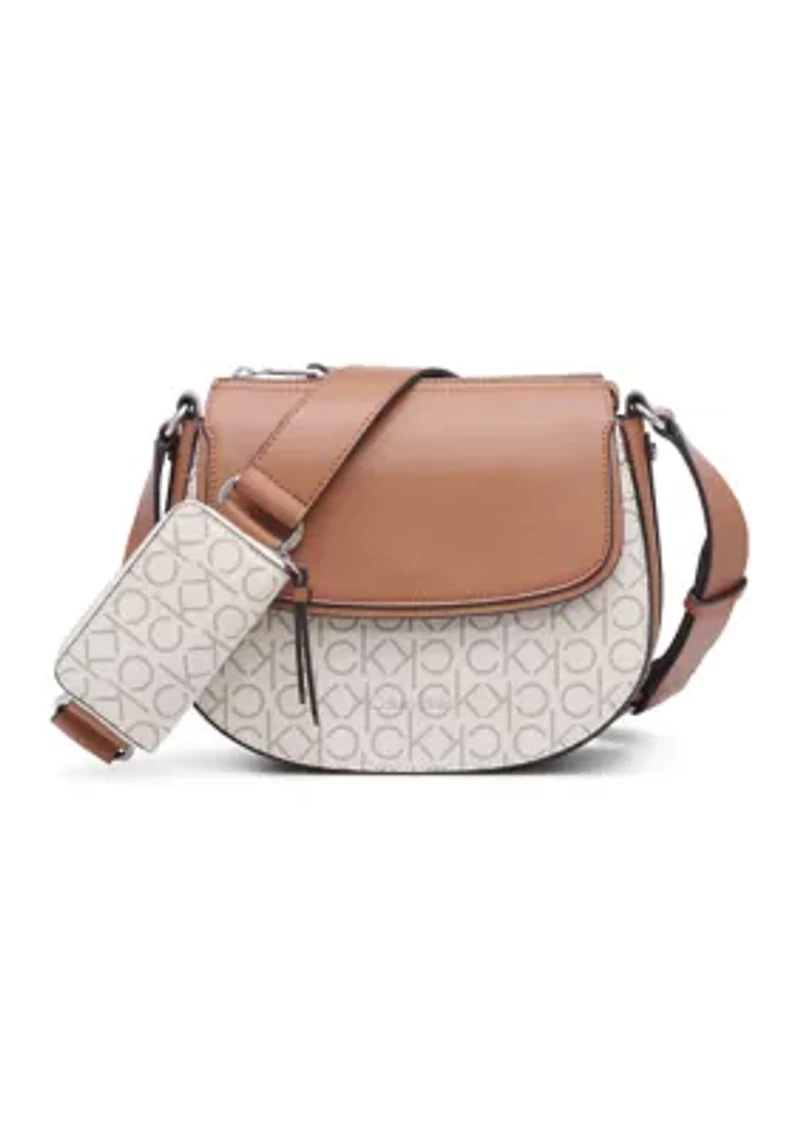 Add a touch of elegance to any look with this Calvin Klein crossbody bag. 23" strap drop Crossbody strap Imported Product Specifications 9.5" W x 8" H x 3" D Material & Care PVC trim Faux leather Clean with a damp cloth or soft brush