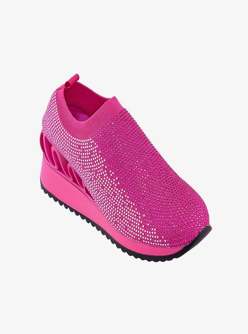 Ride the wave with our Lady Couture fashion wedge rhinestone-encrusted sneaker that gives you style and comfort. A knit fabric upper makes it easy to just slip on. Wavy heel design creates a 2 inch platform wedge. Item cannot be shipped to P.O. Boxes