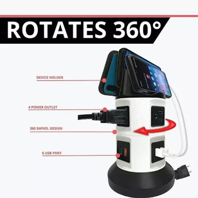 Bell + Howell Swivel Power Rapid Charging Station with 180 Degree Swiveling Design - 6 Outlets and 3 USB Ports