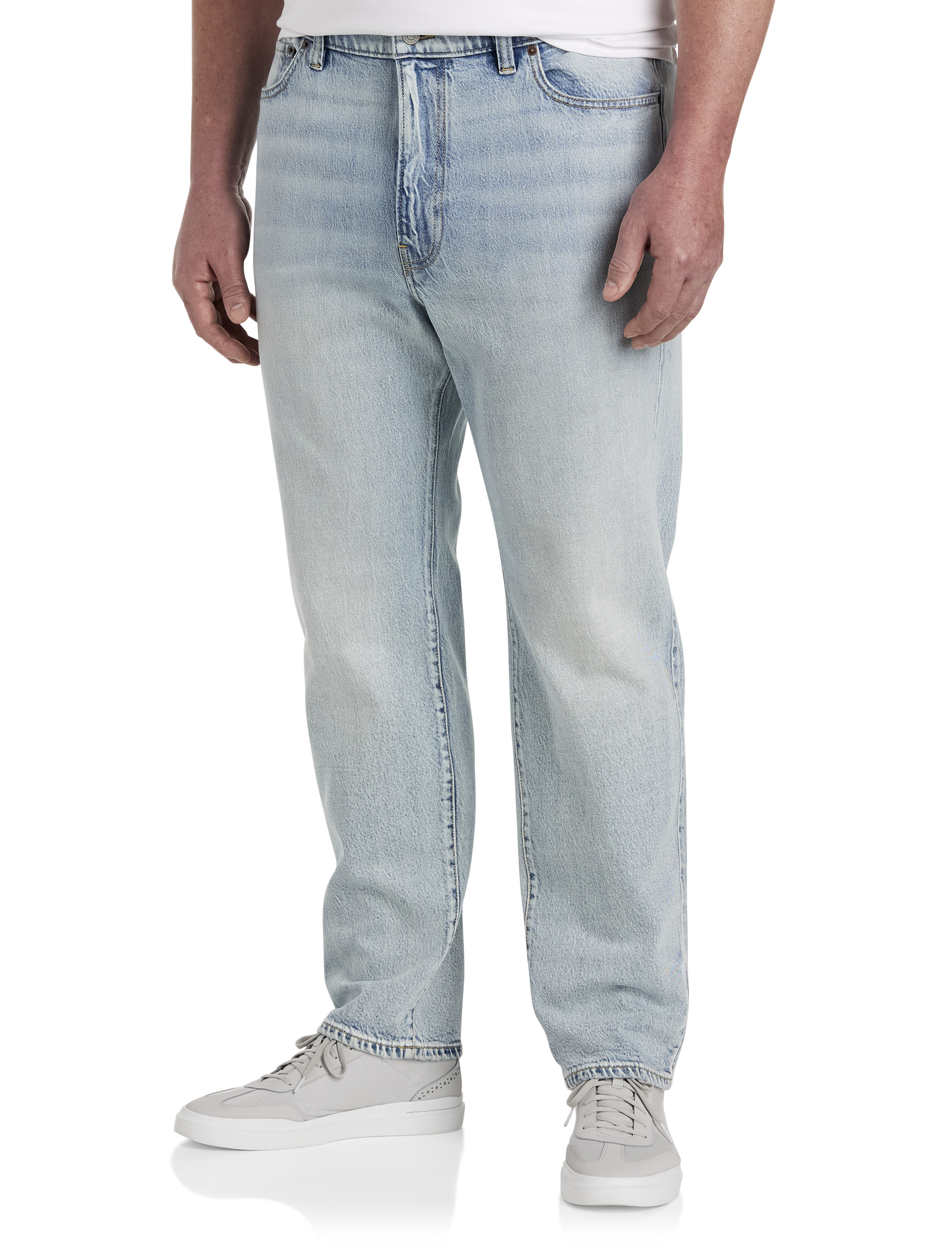 Traditional denim styling and stretch fabric come together to create this pair of Lucky Brand jeans that are stylish and functional. Designed with proper proportions for Big and Tall guys in mind, the light wash pairs easily with any shirt, tee or sweater - so they're perfect for year-round wear. The athletic fit sits below the waist at the front and is tapered through the hips, thighs and legs.