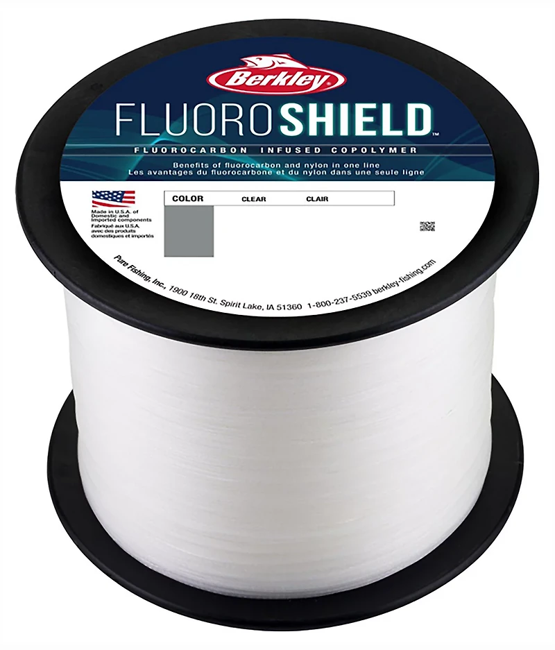 Berkley FluoroShield is the best of both worlds; a co-polymer with a fluorocarbon infusion. The fluorocarbon infusion “shields” the co-polymer increasing its abrasion resistance while maintaining invisibility underwater and manageability for optimized casting distance.
